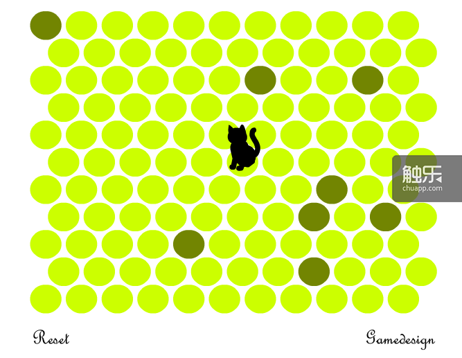 回到“神经猫”本身,可能这个游戏已经在你的朋友圈刷屏,与其看游戏介绍,不如自己去尝试一下——饶是如此,我们依然会简单介绍一下:游戏规则像一个异化版的围棋,有着适度的随机性和巧妙的数学谜题,玩法也足够轻量。在游戏中,你所做的就是通过点击圆点围住神经猫——这种游戏玩法既适合点开就玩,又有一定的重复深度和挑战性。