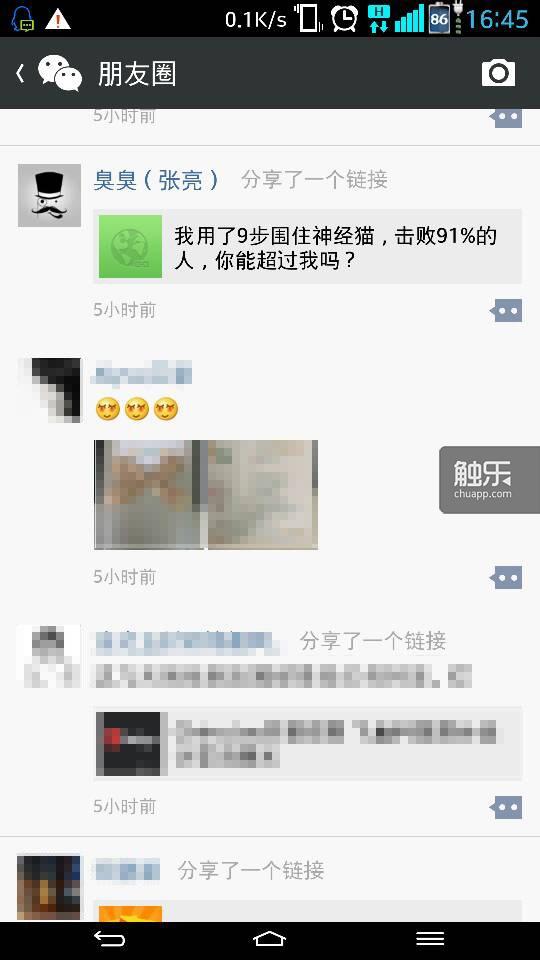 但《围住神经猫》不同,开发组成员鲍阳(化名)目睹了这个游戏爆发的全部过程,第一天看到公司的人零碎地转一转,接下来两天就沉寂了下来,但后台数据还在增长。到了第三天下午,他突然发现公司以外的朋友开始转,到了第四天上午,他发现自己朋友圈里基本80%的朋友都转发了这款游戏的成绩分享,《围住神经猫》已经成了一个现象。