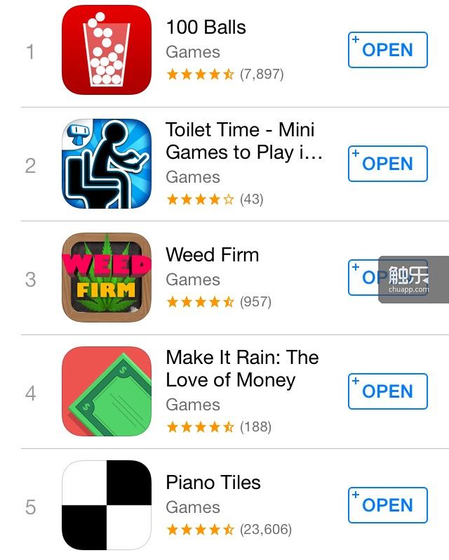 美区免费榜前五名一度被各种《100个球》之类的“小游戏占领”